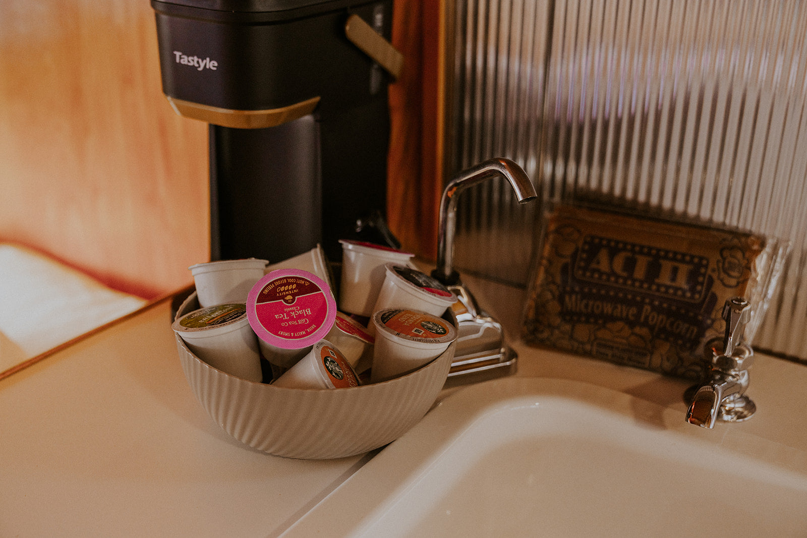 π½οΈ Microwave, K-Cup coffee machine with pods, mini fridge, Brita pitcher
